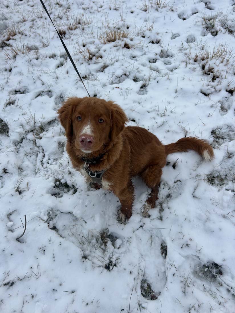 And of course, there is Enzo, our Nova Scotia Duck Tolling Retriever. He is energetic, curious, and always ready to play, but just as happy lying close to us in the grass.