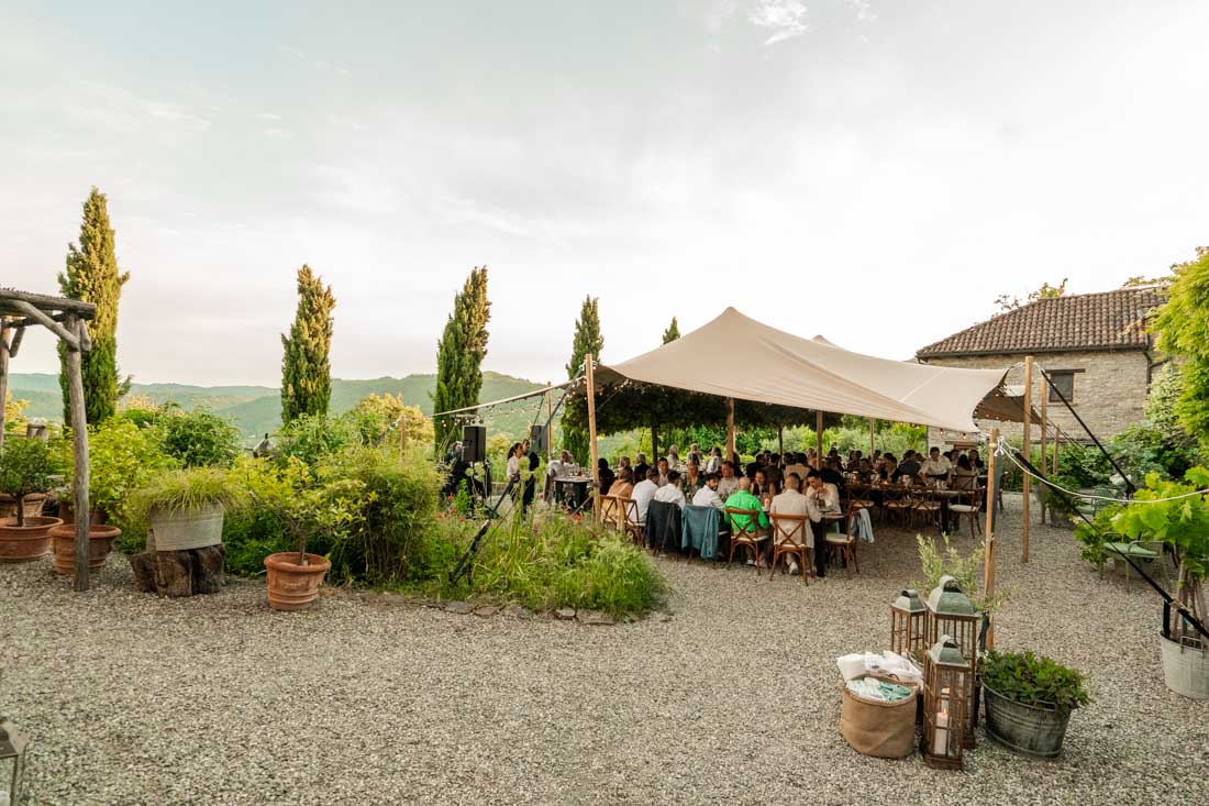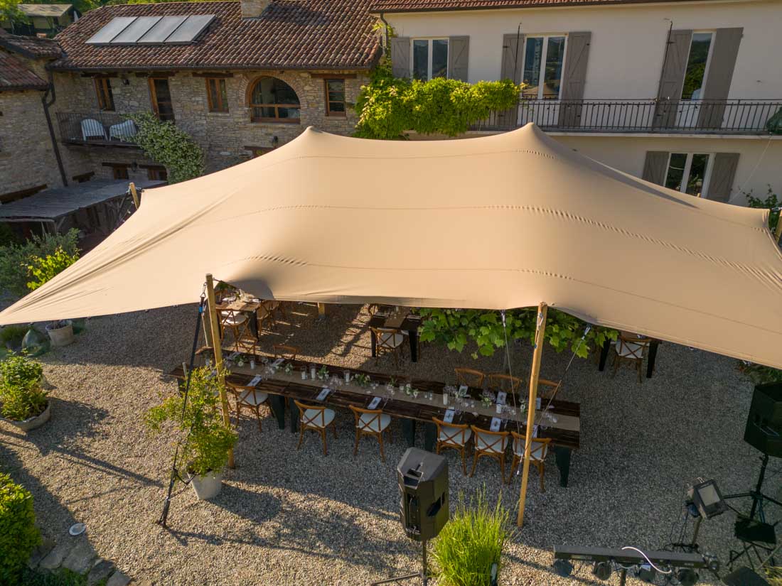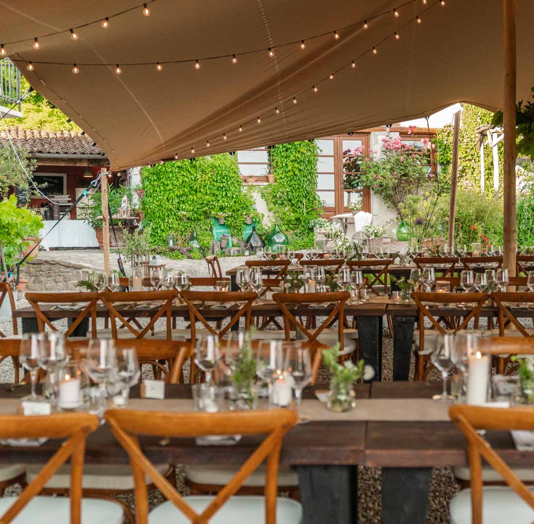 Piemonte is de bakermat van de Italiaanse keuken, denk aan tortellini al plin, vitello tonnato en lange tafels vol met verse antipasti. Op Casa Bonta wordt het eten op locatie verzorgd, met volop mogelijkheden om het menu naar jullie smaak aan te passen. Van een uitgebreid diner tot het moment van de cake cutting onder de sterren – alles draait om samen genieten van goed eten, wijn en sfeer. Ook voor en na de bruiloft zijn er genoeg opties voor gezellige momenten: een pizza-avond aan lange tafels, een wijnproeverij of een ontspannen lunch bij het zwembad.